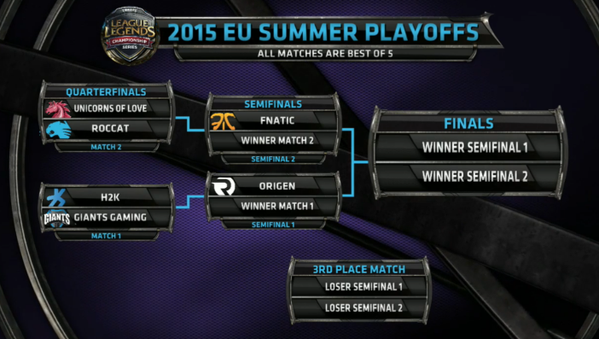 V boji o Worlds už vypadl Giants Gaming, který podlehl celku Roccat. Ti dnes čelí Origenu. Vítěz se utká s Jednorožci a úplný vítěz pojede spolu s Fnatic a H2K reprezentovat Evropu na Mistroství Světa.