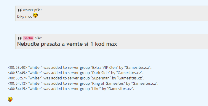 Prílišná dobrota sa nikdy veľmi neoplácala. Niečo podobné zažil Garlin, ktorý sa nás na Vianoce rozhodol potešiť pár kódmi na TS s nádejou, že nie sme takí nenažranci a spravodlivo sa medzi sebou rozdelíme. To však nepočítal s whiterom, ktorý sa rozhodol prilepšiť si o „pár“ kódov a spraviť si tak Vianoce krajšími.