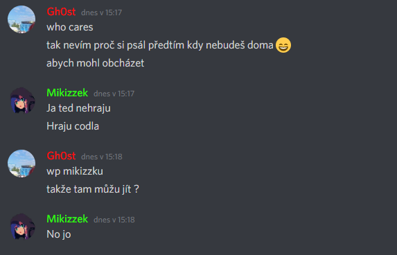 Na Discord si můžete psát co chcete, až ti to bude psát na serveru, možná si ty screeny dokonce přečtu.