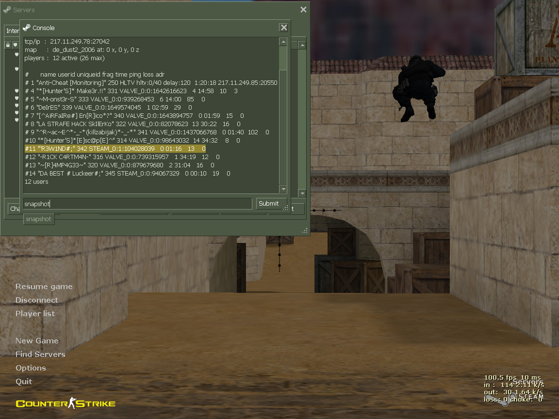 Bohužial hráč sa odpojil a nestihol som spraviť screen statusu tak tu je aspoň odkaz na HLSTATS.