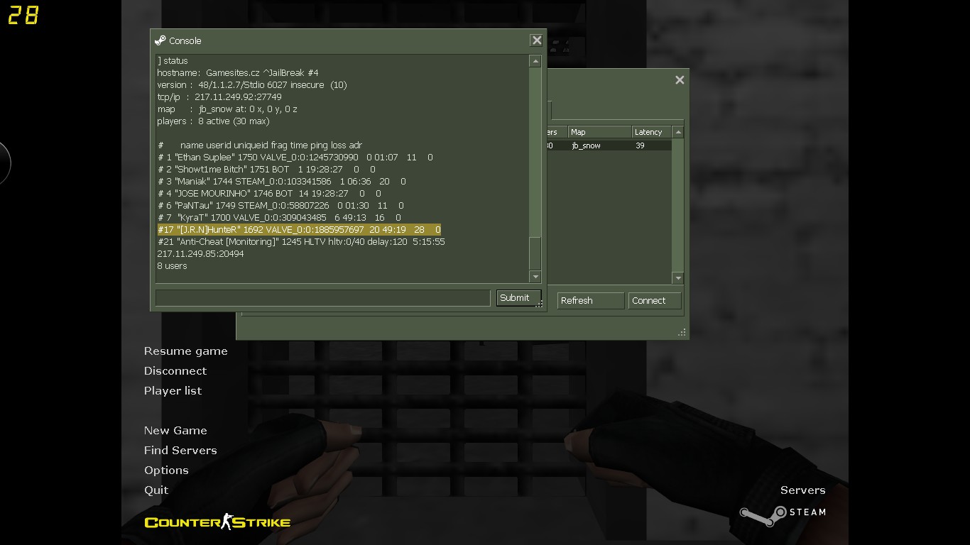 3. Steam ID:1692 VALVE_0:0:1885957697 20 49:19 28 0