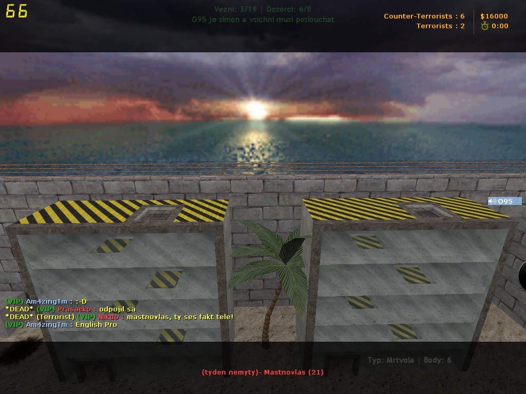 Ano řekl jsem že mi je to jedno. Je to tvoje blbost, ale pokud vím měl si čas na to aby si přešel na druhou věžičku. To že tě CT zabili když ses snažil přeskočit už moje věc není. Dal si mi bezdůvodný kick, protože jsem dal jasný příkaz a je to tvoje blbost že sis vybral stejnou věžičku jako tvůj spoluhráč. Měl si šanci přejít na prázdnou věžičku pokud si to dobře pamatuju