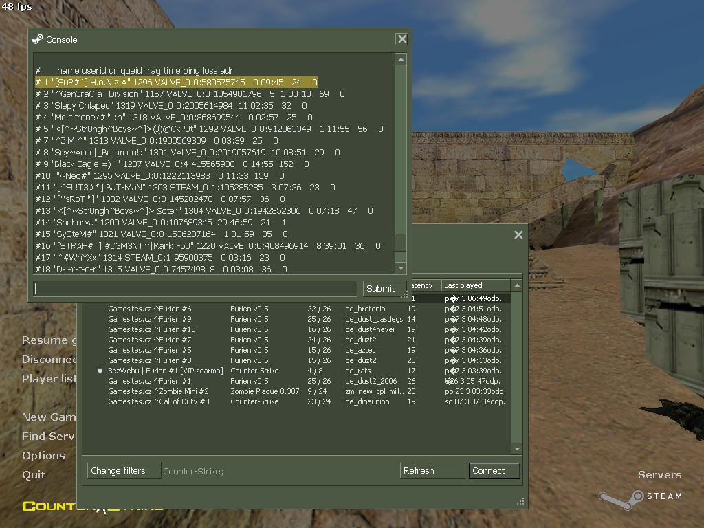 SID: "[SuP#`] H.o.N.z.A" 1296 VALVE_0:0:580575745 0 09:45 24 0
