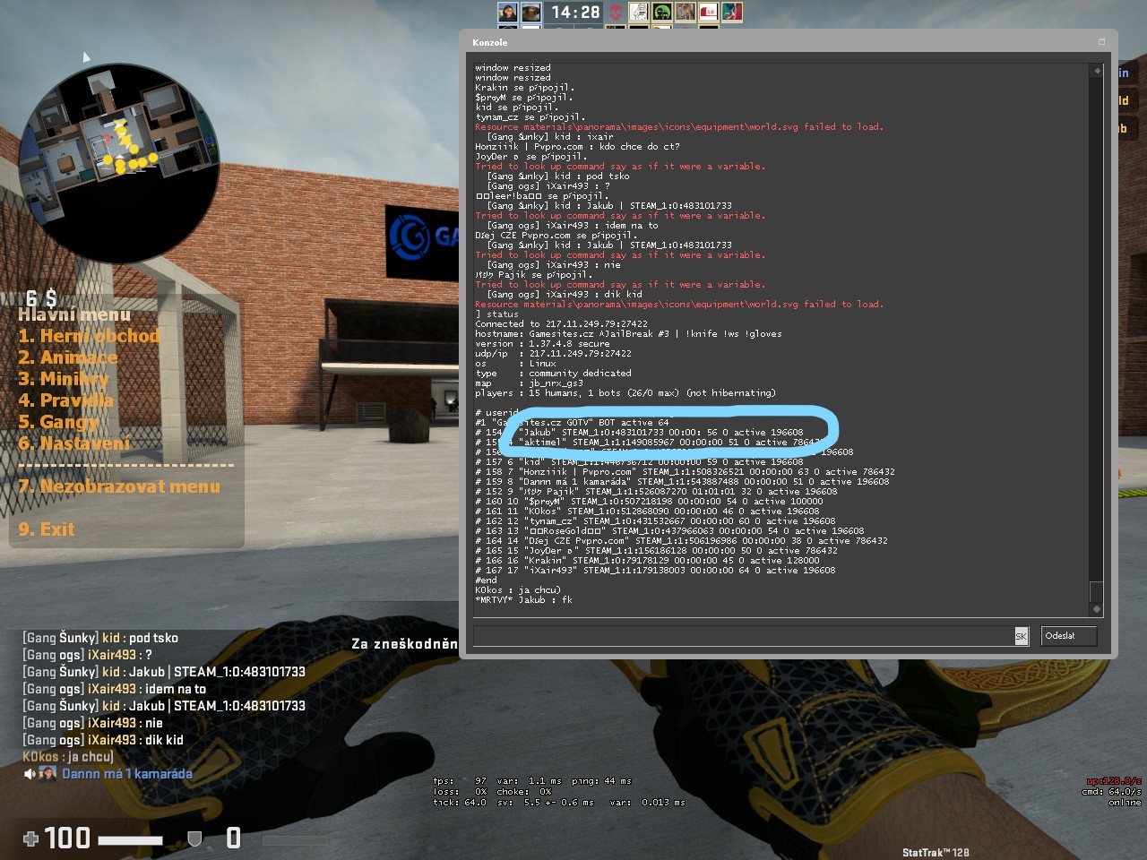 SID hráče: STEAM_0:0:483101733