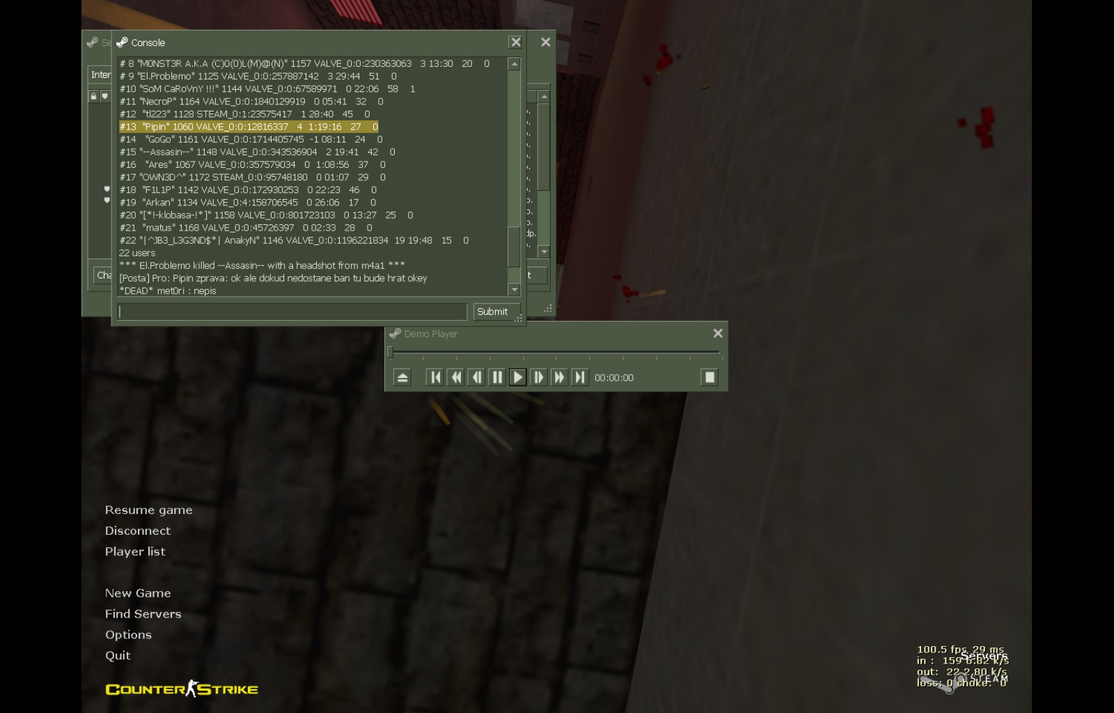 3. SteamID hráče:VALVE_0:0:12816337 4 1:17:03 28 0