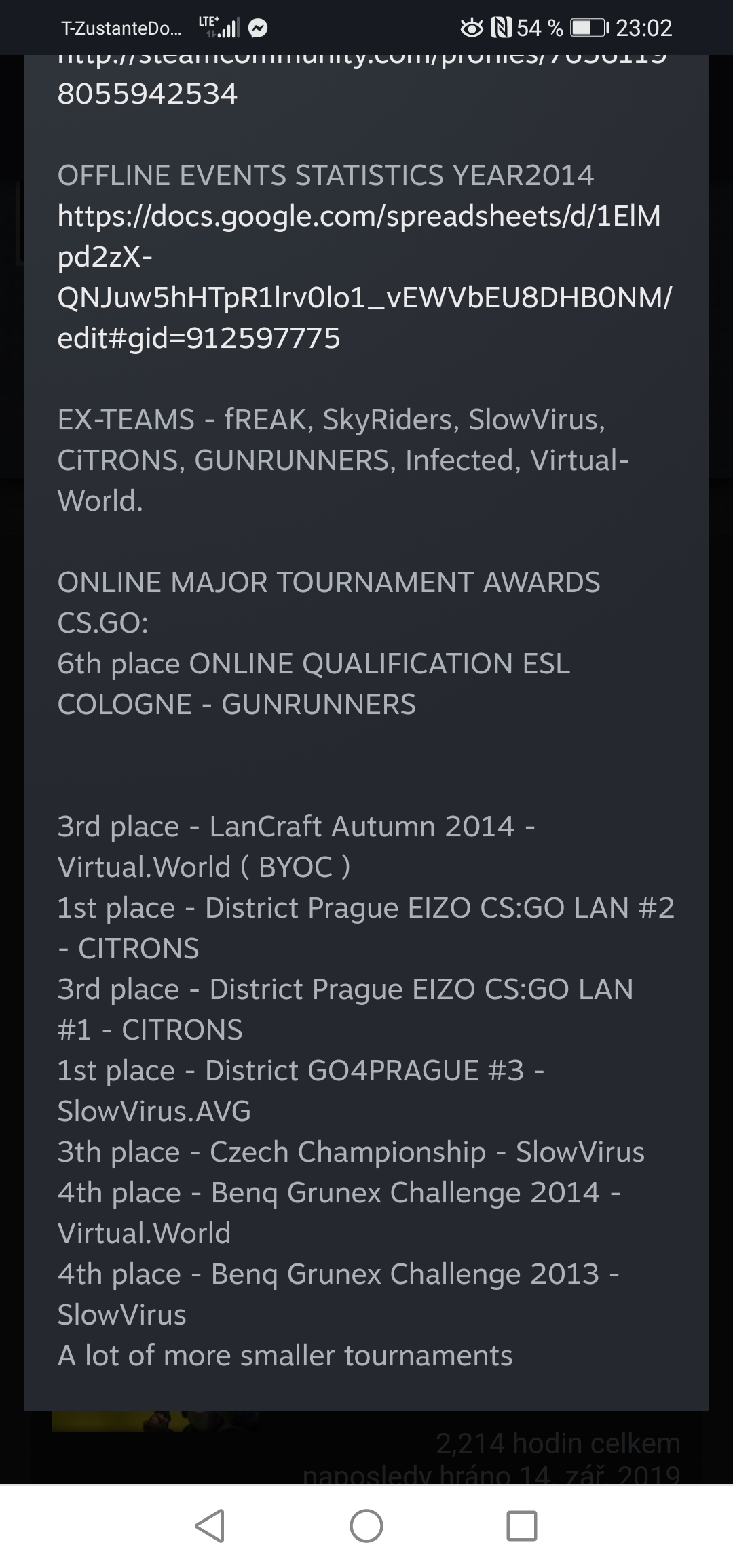 No nic asi tahle hádat se tu svama nebudu přiznávát se nemám k čemu tady máš můj profil https://www.playzone.cz/cs/user/77679 . Chtěl jsem si nostalgicky zastrilet protože jiný český servery už nefungují a gather se tu těžko složí tak sem rád že to tady ještě drží když mám občas chuť a nudím se doma,.. na tihlech serverech sem začínal díky tomuhle portálu sem začal hrát závodně csko když tu phttps://www.playzone.cz/cs/clanek/anal ... -mcr-bgchořádali tenkrát turnaj který vyhráli wrAth později reprezentovali GS na posledním MČR v 1.6 tuším s klantagem wrAth of gamesites. 3 dní zpátky sem to nainstaloval jediné co jsem si změnil je zbraň na levou stranu žádný cfg nic Nechci se tu něčím ohánět že jsem nějaký hráč ale je blbý že admin nepozná co je cheat a co ne. Hrál sem csko XY let s i proti top hráčům myslíš že mám potřebu jít cheatovat na public mrtvé hry? Upřímně je mi to jedno Ban mi nech ale zamysli se nad tím co si tu napsal osočuješ mě že sem cheater a že se ktomu mám přiznat.. No offense k tím screenum si můžeš přečíst tento článek https://www.playzone.cz/cs/clanek/analy ... l-mcr-bgch jestli tě ani toto nepřesvědčí se na to podívat znovu a zamyslet se tak nevím.. Jestli ne tak ale vip mám že serveru které už ani nejsou viz screen