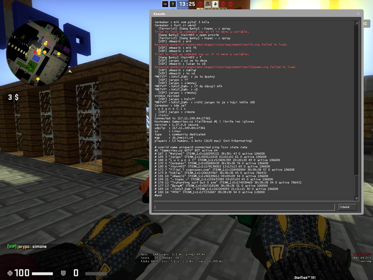 SID hráče: STEAM_0:1:206197967