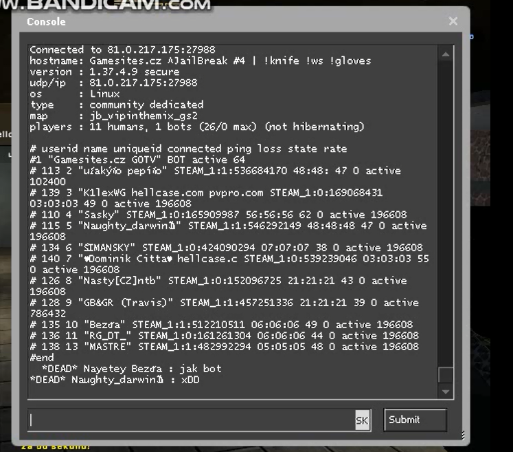 SID hráče: STEAM_1:1:536684170