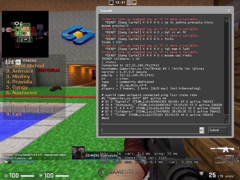 SID hráče: STEAM_0:1:174478891