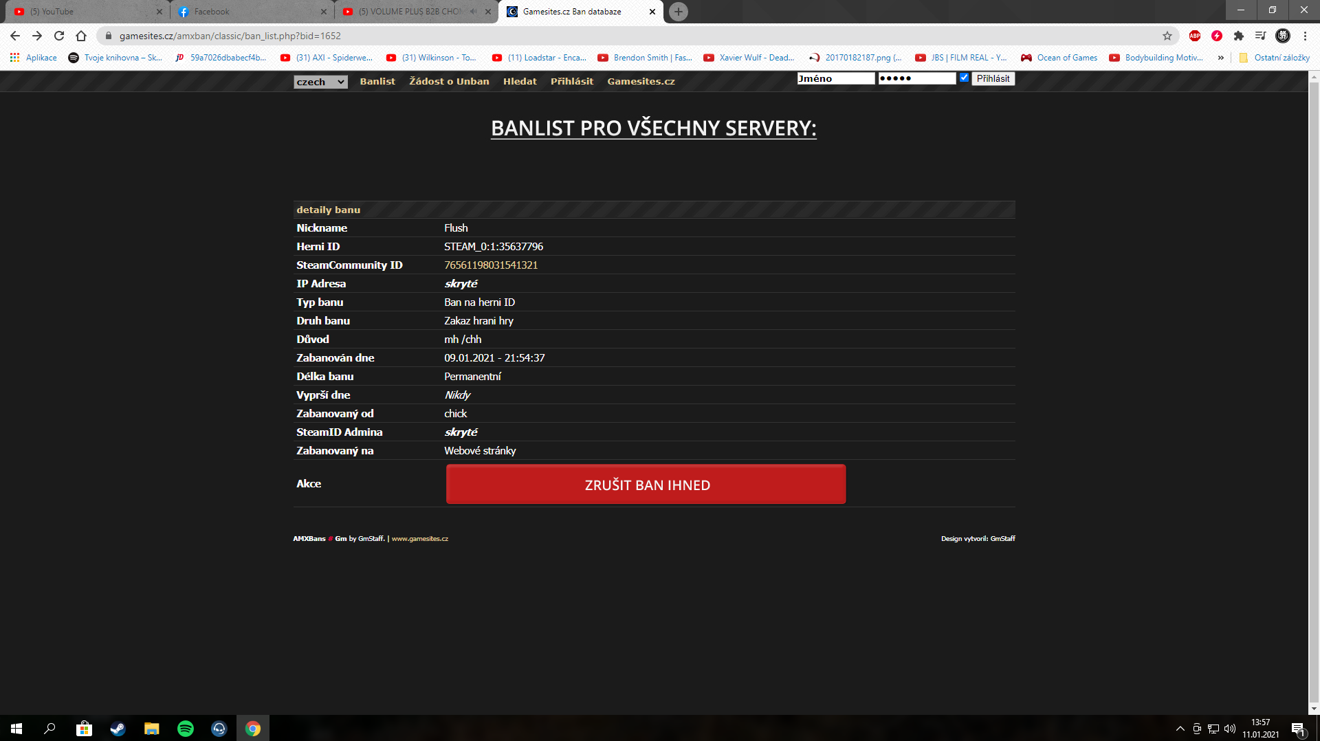 Nevím za co jsem upřímně dostal ban. Hrál sem teď skoro každý den na serveru, připojil sem se a najednou ban. Ban jsem dostal přes web.. Na ban listu mi to píše, že ban nemám, že hrát mohu. Mám origo csko na steamu.