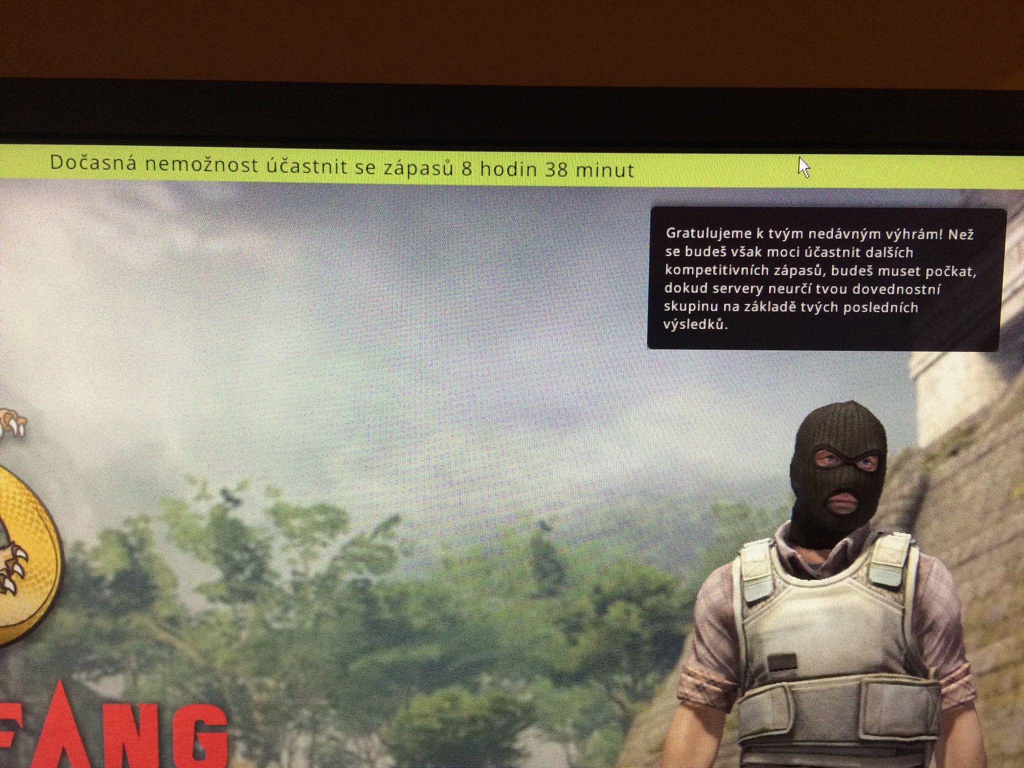 včera jsem hrál cca 10 kompetitivních zápasů a po posledním, když jsem v loby chtěl dát další, mi vyskočil nahoře zelený pruh (bylo tam 12h) s vysvětlením v černém obdélníku.