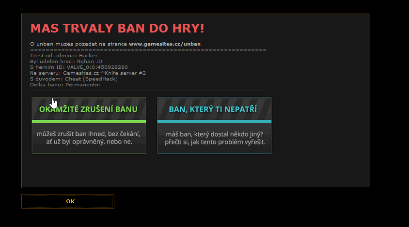 dostal jsem ban a nevím za co (cs 1.6) Update