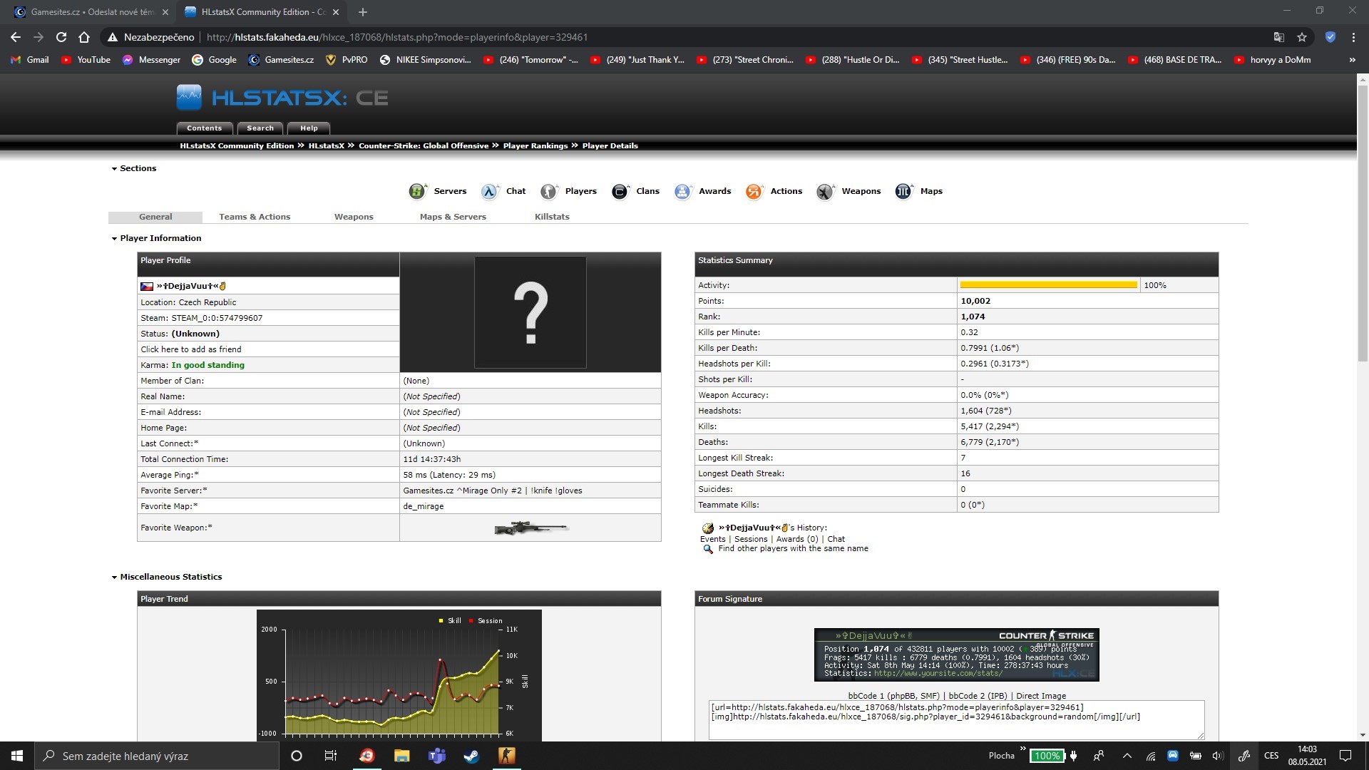 Přikládám odkaz na HLStats: http://hlstats.fakaheda.eu/hlxce_187068 ... yer=329461 , screen je netřeba, asi jako viz žádost criminal.