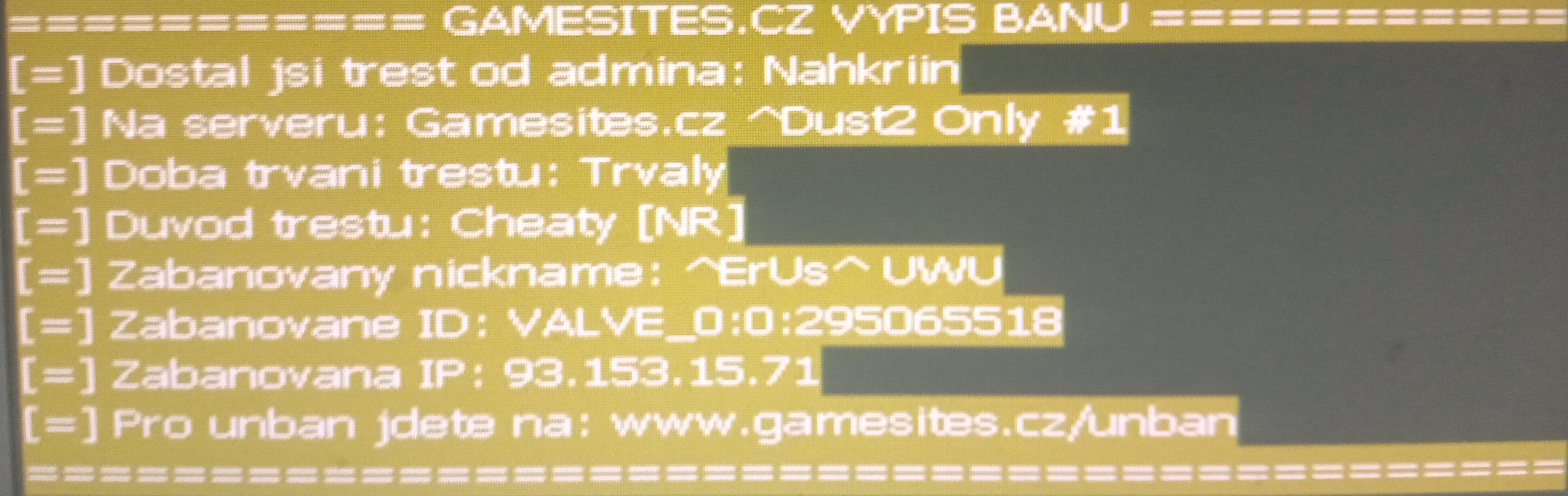 =========== GAMESITES.CZ VYPIS BANU ===========