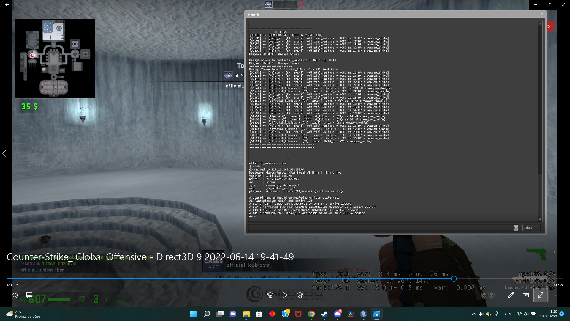 Popis situace: Hráč na začátku videa dal free VD (Nemá asi ani mikrofon, za několik kol ani nepromluvil) 1:05 Zapne nenahlášený mód