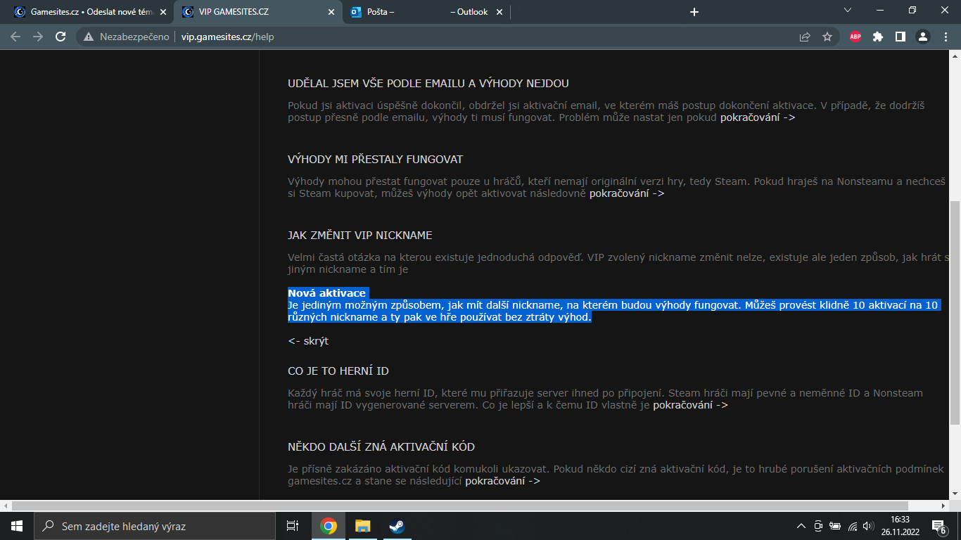 Ahoj mohu poprosit, chtěl jsem si aktivovat VIP s jiným nickem.