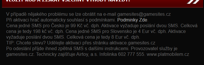 VIP mam zakoupené, dál sem si chtěl dokoupit EVIP, ale když sem poslal ty 2 smsky, tak když zadám svoje čislo do gamesites/kod tak mi to píše že se z mé simkarty nic neposílalo. To mi ale nějak nesedí, když mi přišly 2 smsky