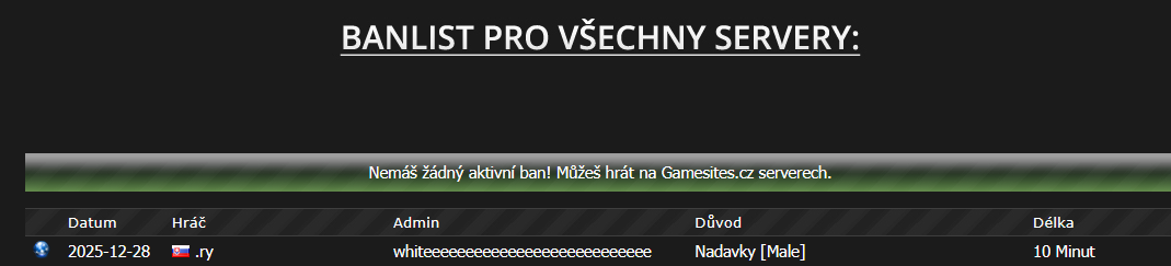 mojko zlate vidim ze to mas v hlave dost pomylene lebo prave od admina White mam najviac banov neviem či mate z toho scvrknute pipiky ked napisem jednu nadavku a hned tam placate ze nech mi da ban neviem co tu pises o vcerajsich nadavkach ked som napisala len toto 2025-12-28 20:53:21 sak nic ja len tak čo si hned piča. Gamesites.cz ^Dust2 Only #1 cize dobry pokus predpokladam ze si asi ten nonstop urevany hrač joker :/
