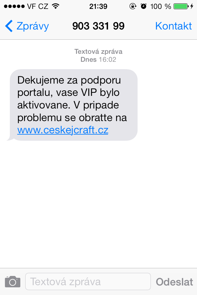 Zdravim poslal jsem na minecraftu V.I.P a pak mi spadl minecraft dodavam dukaz ve forme sms
