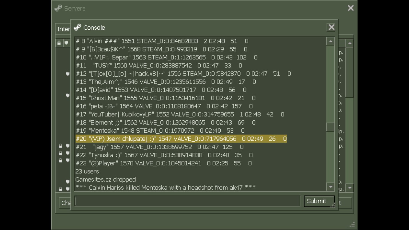 SteamID STEAM_0:VALVE_0:0:717964056 + HLstatsX http://hlstats.fakaheda.eu/hlxce_2025/hlstats.php?mode=playerinfo&player=20700
