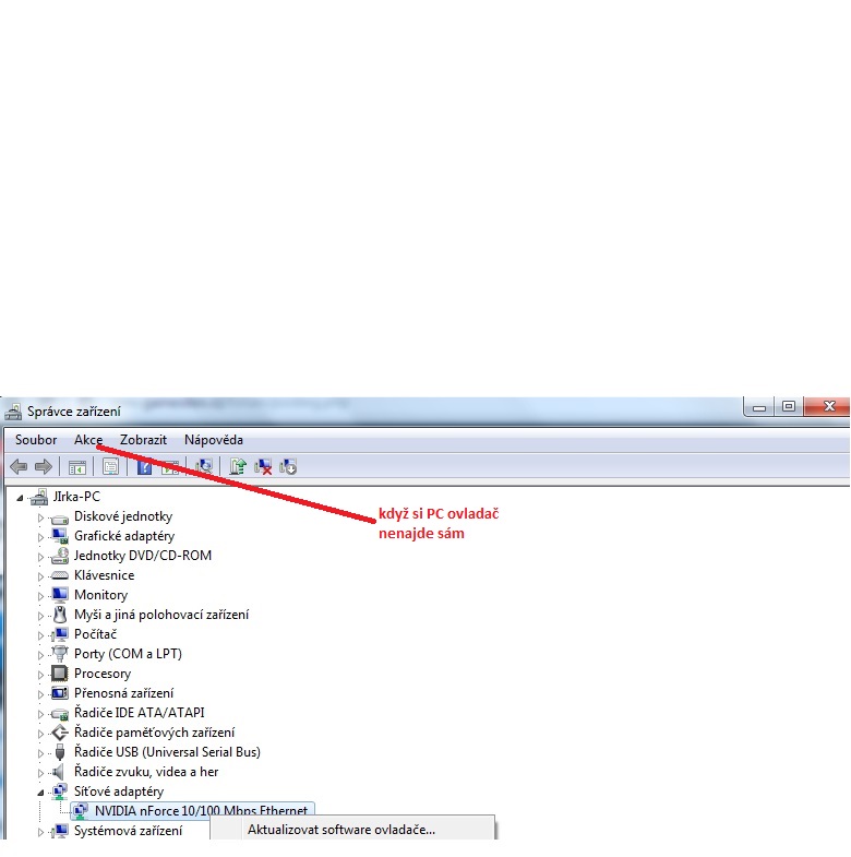 3. restartuj PC, po najetí windows si PC sám nainstaluje ovladač sám (protože jsi ho nevymazal).