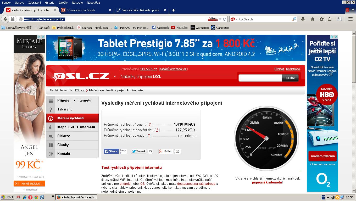 Si čech odmeraj si rýchlosť internetu na tejto stránke www.dsl.cz a výsledok napíš sem nastavíme ty RATY.