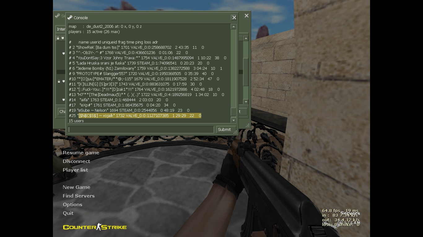 Nickname porušujícího:[$N$C$S$] ~ vojalk