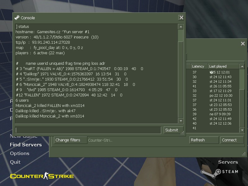 2014-12-25 00:26:10 fallen je ti jasne, ze ta nahlasim, ze?. Gamesites.cz ^Fun server #1 fy_pool_day
