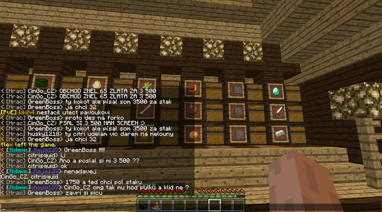 Na serveri je chest shop pre obchod peňazí za itemy a /trade pre výmenu itemu za item, čiže ak obchoduješ inač s hráčom, ktorého ani nepoznáš (nieje sa čomu čudovať, ak ťa okradol)