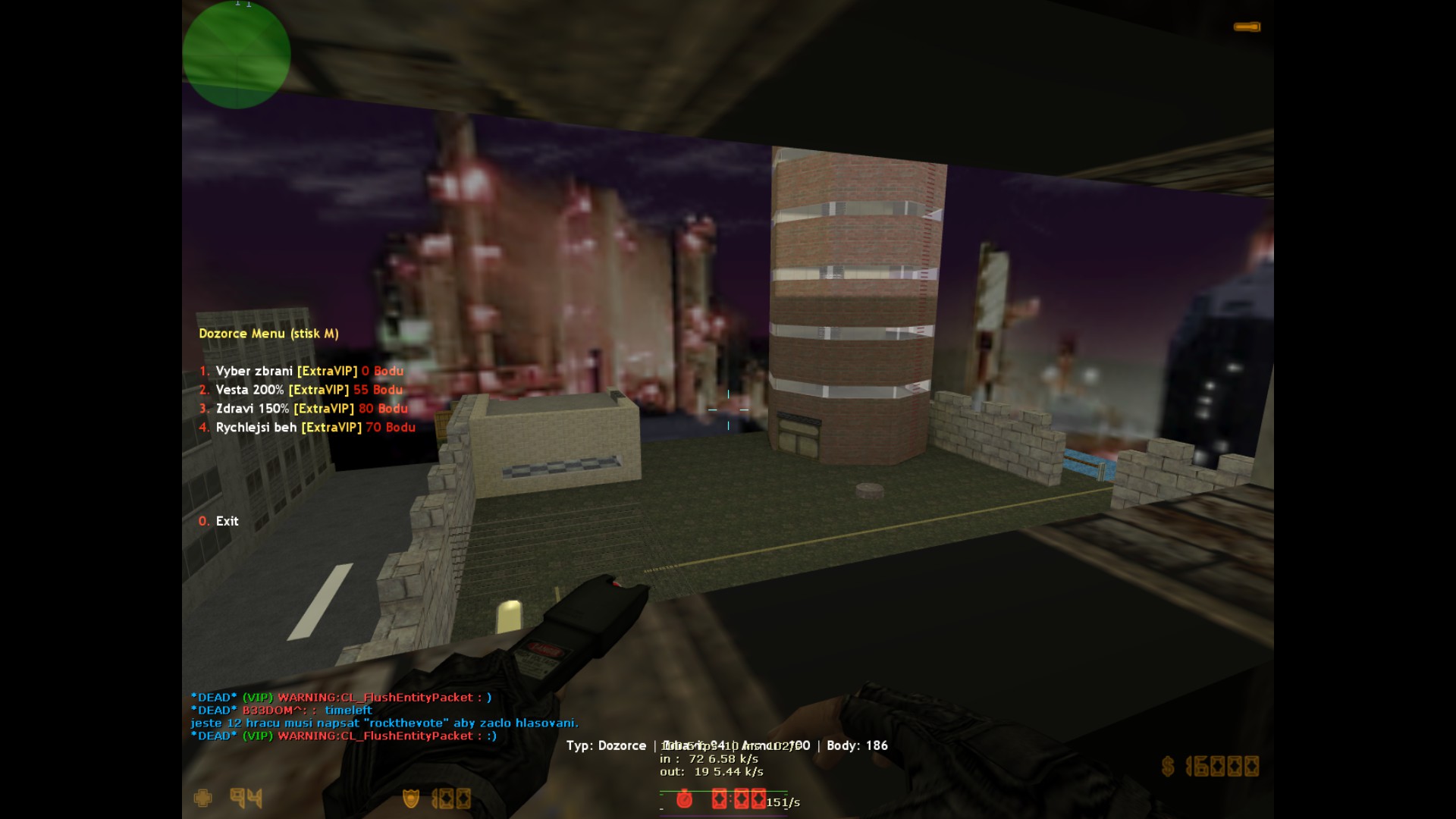 nič si z toho nerob, mne robi presne to isté, a takisto napr. na mape jail_crime, keď sa postaviš ku modrej veži ako je awp, a je otvorena ta brána v smere ku zbrojnici, tak nevidím k futbalu/bazénu..