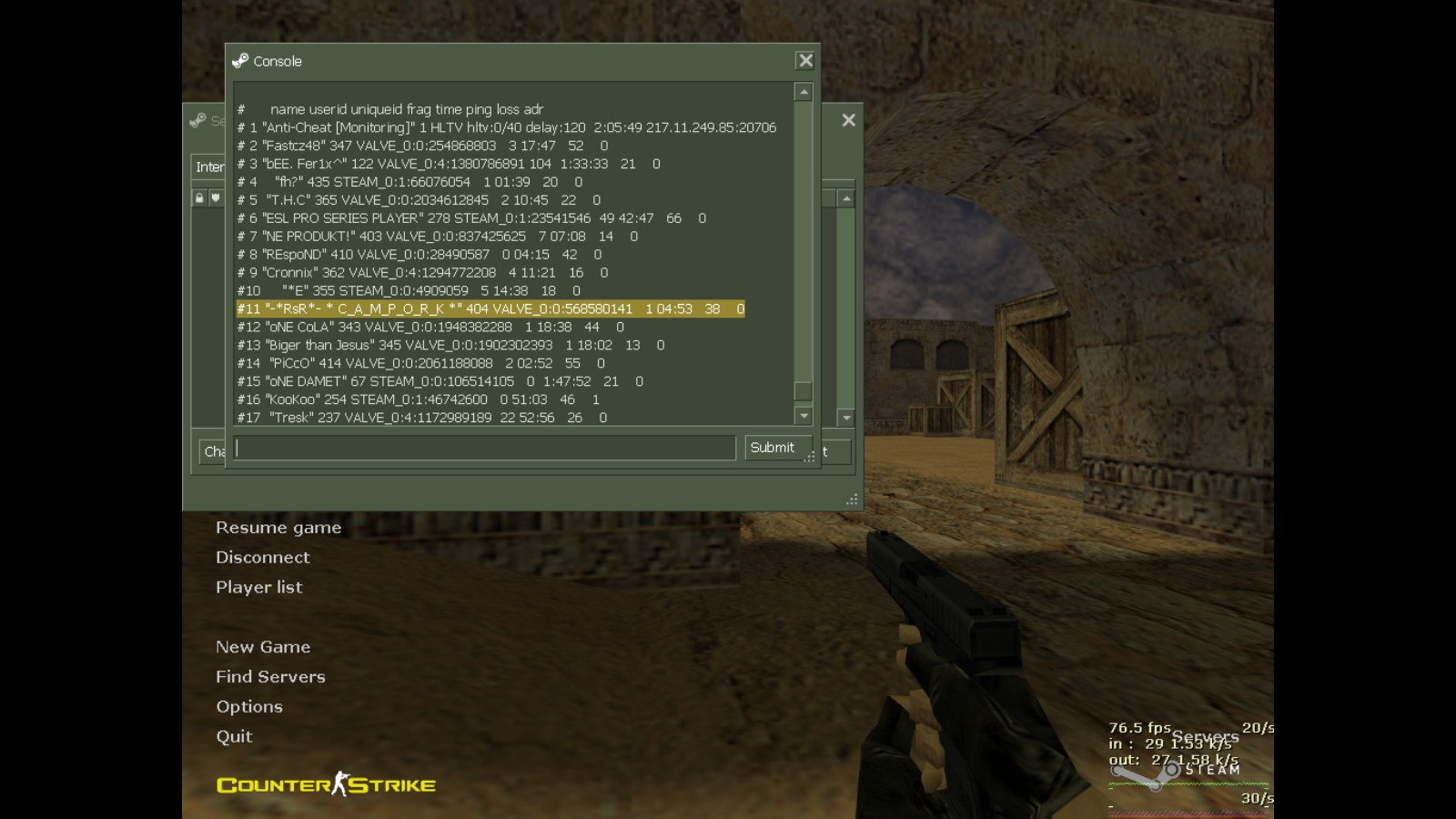 SteamID + Screenshot SID: STEAM_0:VALVE_0:0:568580141