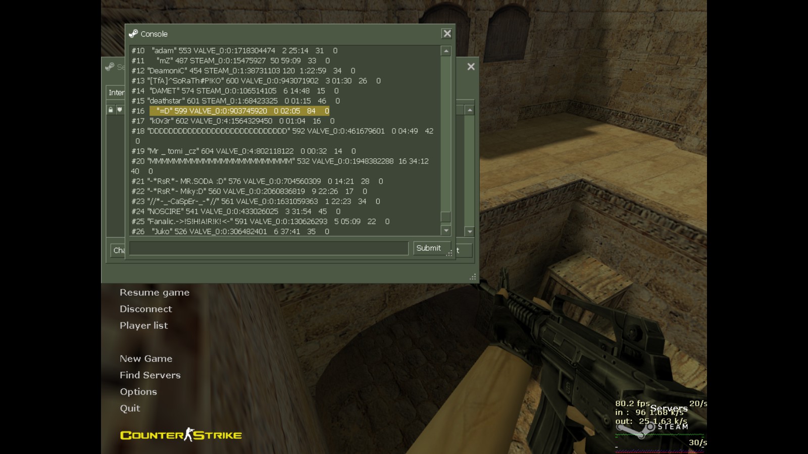 SteamID + Screenshot SID: STEAM_0:VALVE_0:4:2007491973,http://hlstats.fakaheda.eu/hlxce_821/hlstats.php?mode=playerinfo&player=173895