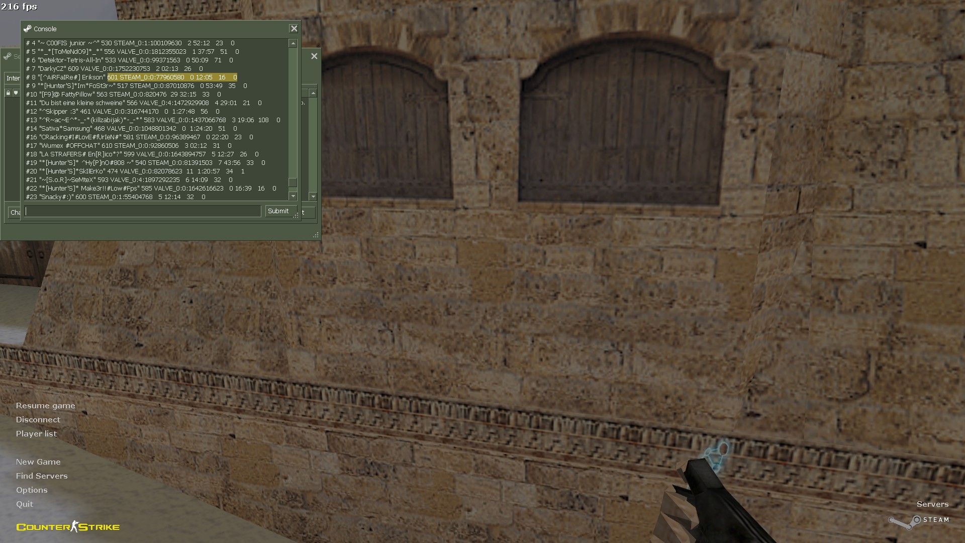SteamID + Screenshot SID:601 STEAM_0:0:77960580 0 12:05 16 0