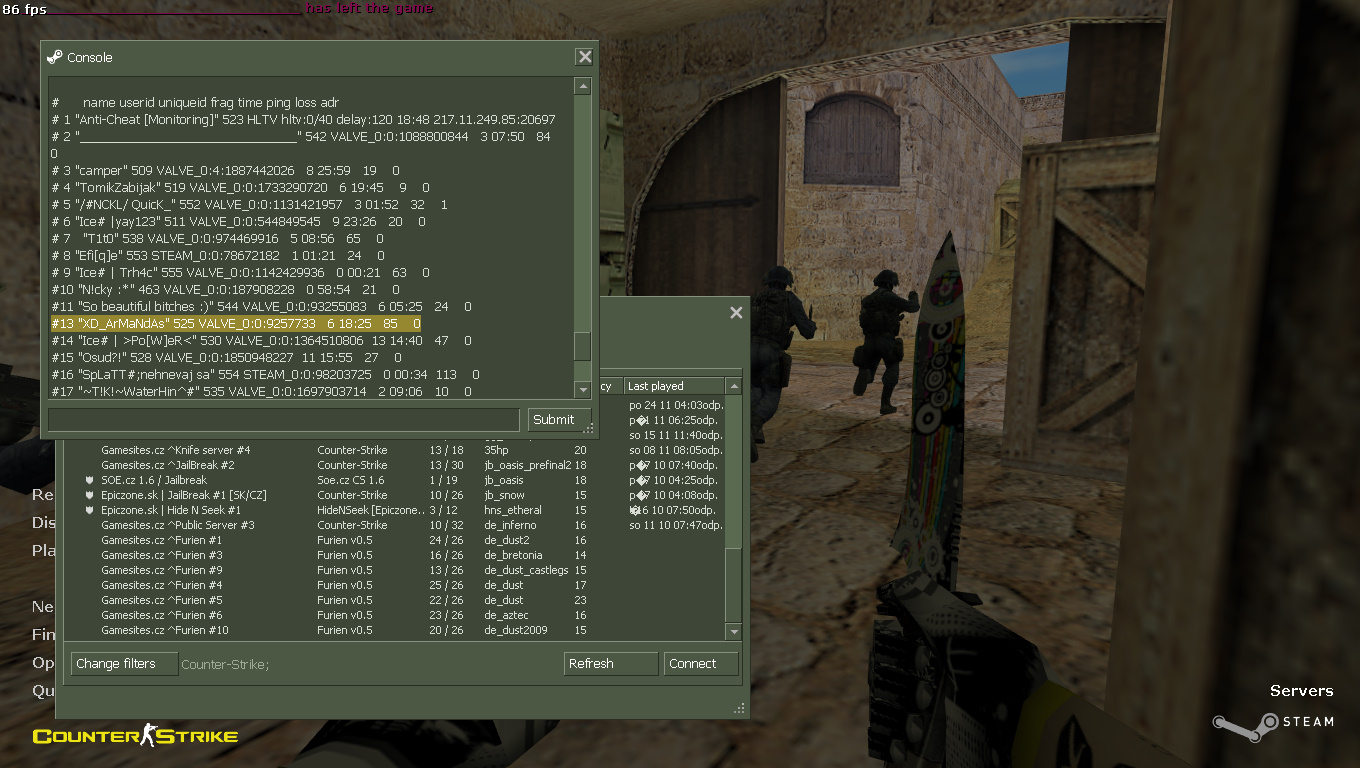 Porušuje nekdo pravidla na Furien serverech? Sdělte nám to zde.