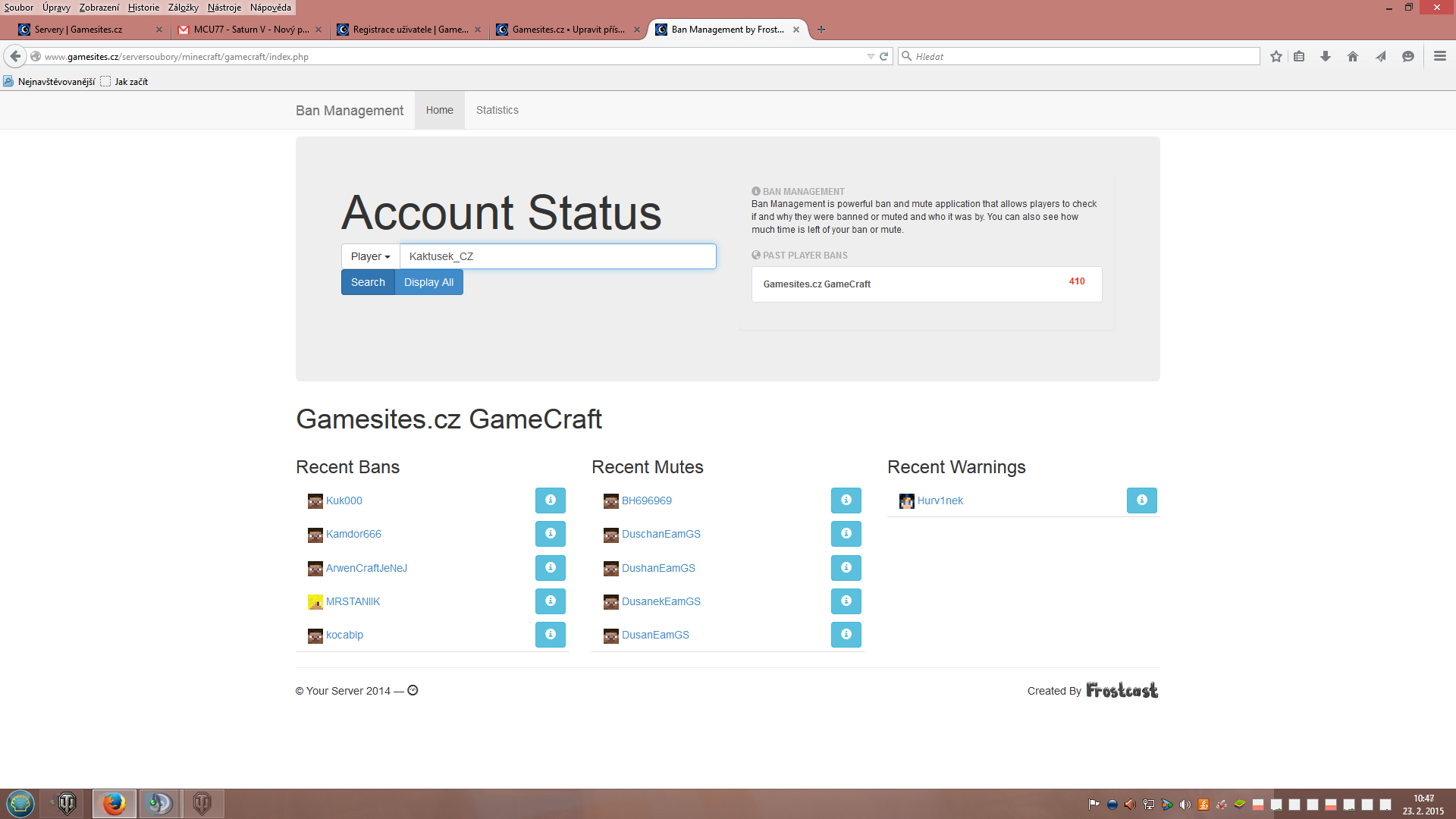 Zde přikládám ještě screeny z banlistu že jsem nebyl trestán na skyblocku: