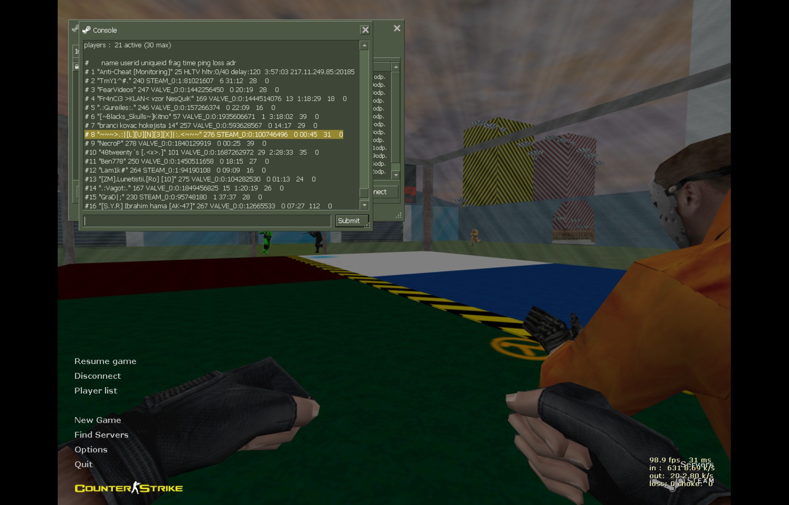 3. SteamID hráče:STEAM_0:0:100746496 0 00:45 31 0