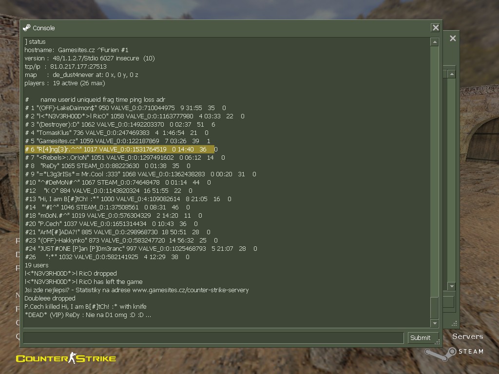 Porušuje nekdo pravidla na Furien serverech? Sdělte nám to zde.