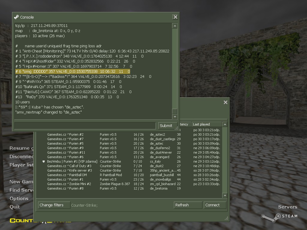 Porušuje nekdo pravidla na Furien serverech? Sdělte nám to zde.