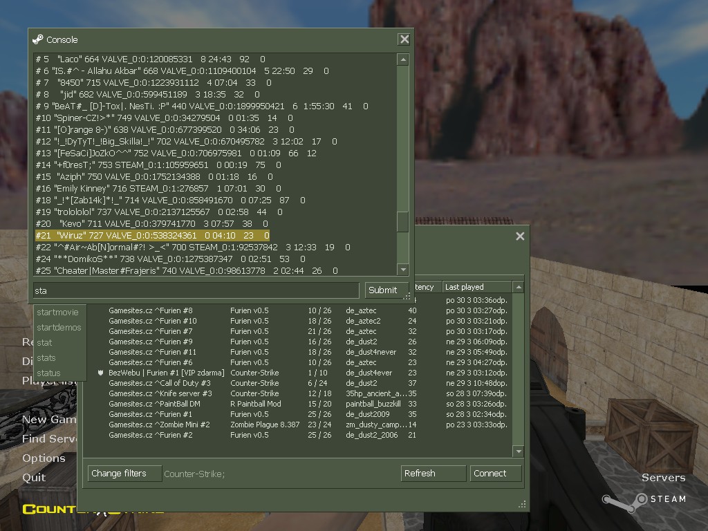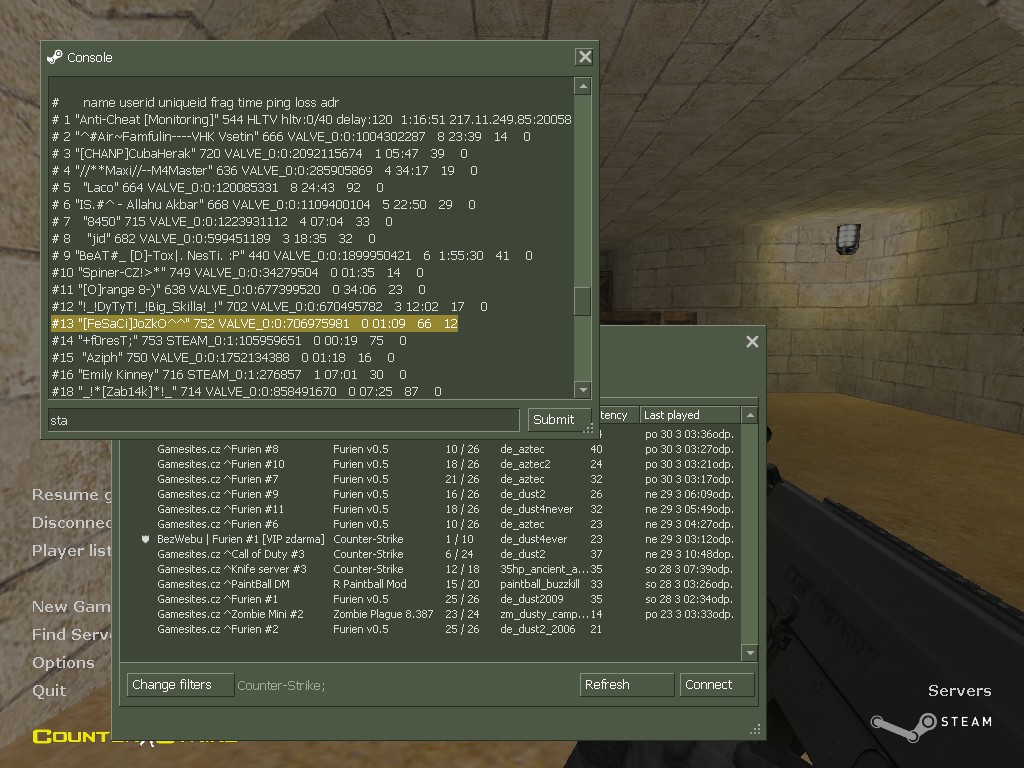 SID: "[FeSaCi]JoZkO^^" 752 VALVE_0:0:706975981 0 01:09 66 12