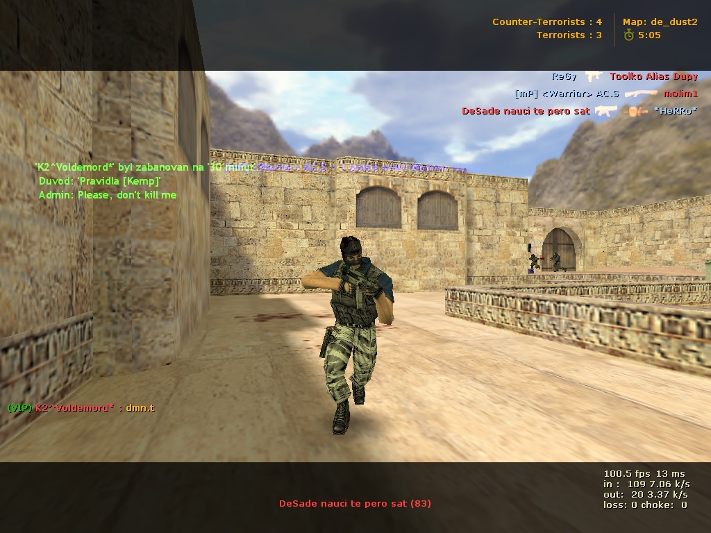 Věř nebo ne, ale nedávám neoprávněné bany (pokud nenastane chybička v systému). Tvoje hra v mapě dust 2 spočívala v tom, že si lítal s awp kolem vlastní vlajky (T strana). Pak sis usmyslel, že si trochu pokempíš ve vaně, kde sis rád postřílel CT vybíhající ze spawnu. Jako sorry, ale tohle je trochu moc.