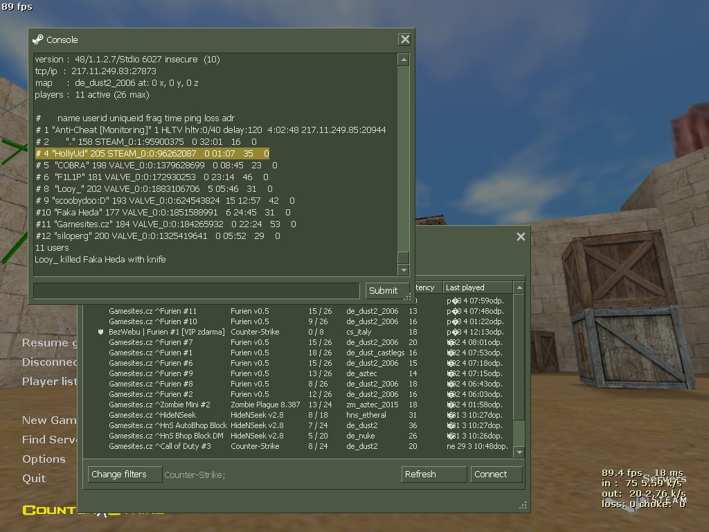 SID: "HollyUd" 205 STEAM_0:0:96262087 0 01:07 35 0