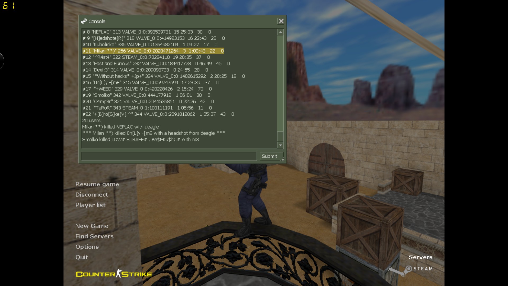 SteamID + Screenshot SID: VALVE_0:0:2020471264