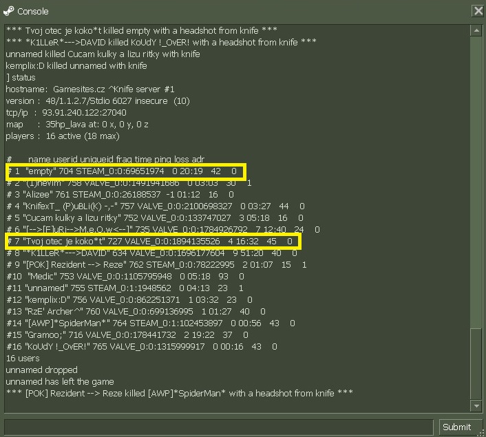 Dnes jsem chvíli hrál na serveru Knife #1 a ani né po 10min se tam lidi začali urážet , nadávat si do rodin apod.