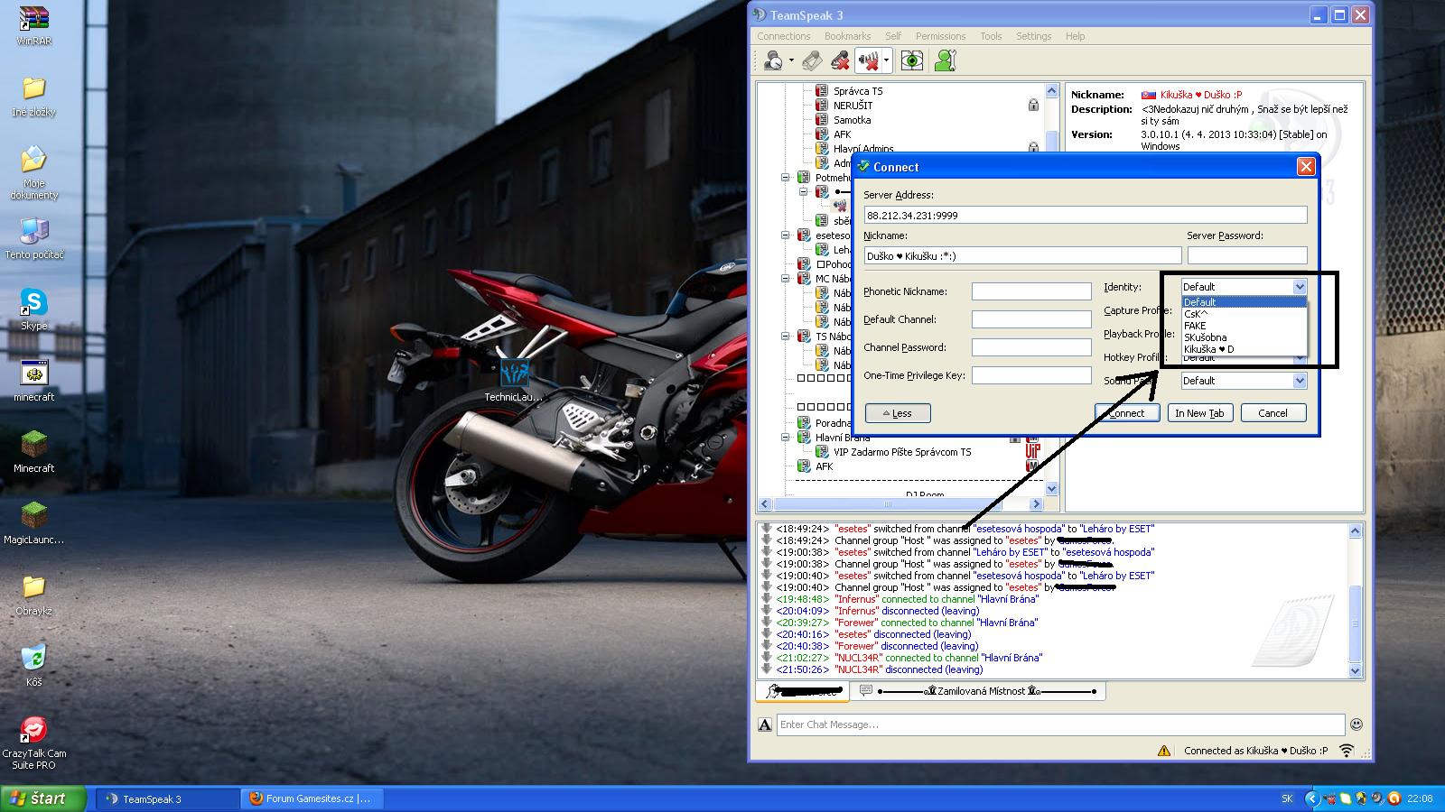 1.) Pozri si aké máš identity ked ich máš viacej tak sa skus na každú pripojiť