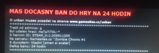 Ahoj dnes okolo 16:30 ma hore uvedení admin z nejakého dôvodu zabanoval do hry na 24 hod a ja nechápem prečo prosím o potrestanie