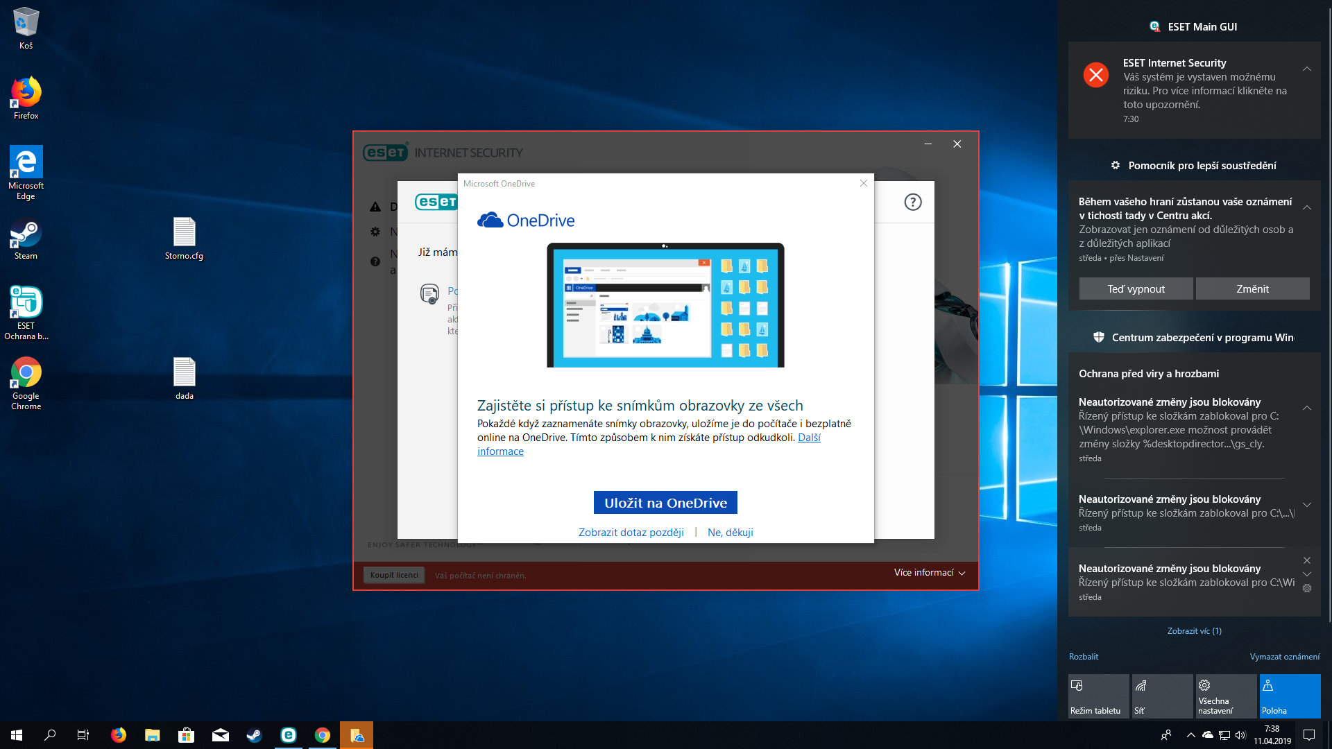 Ten ESET jsem chtěl odinstalovat,ale nešlo to,tak se po té nainstaloval zpět (sám) a teď mi furt je vyskakuje po startu a otravuje