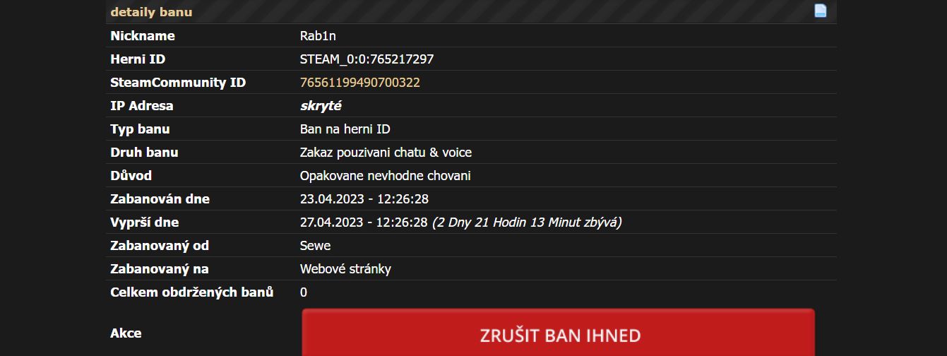 2 dni som bol offline a pocas toho som dostal BAN na 3 dni 23.04.2023 cas 12:26:28 admin Sewe..." neslusne chovani"