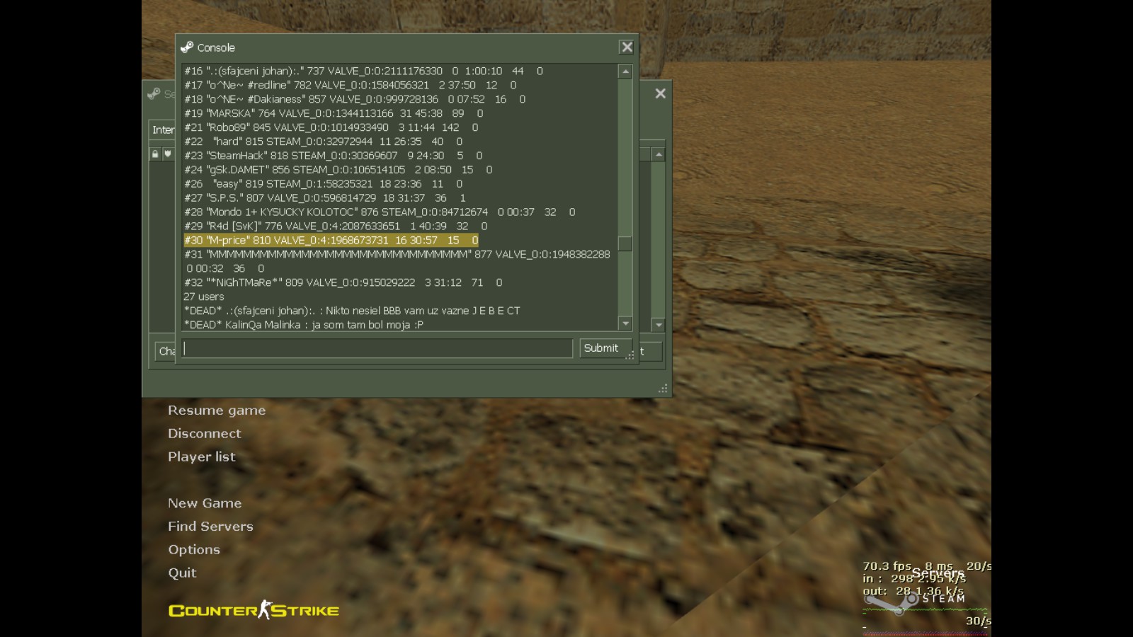SteamID + Screenshot SID: STEAM_0:VALVE_0:4:1968673731 + http://hlstats.fakaheda.eu/hlxce_821/hl ... yer=104476
