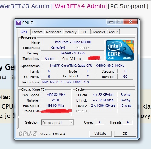 CPU: Intel Core 2 Quad Q 6600 2,4Ghz přetaktovaný na 4,5Ghz