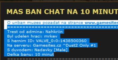 Následne si na admina začal nezmyselne útočiť, za čo si dostal najprv kick a potom aj krátky ban.